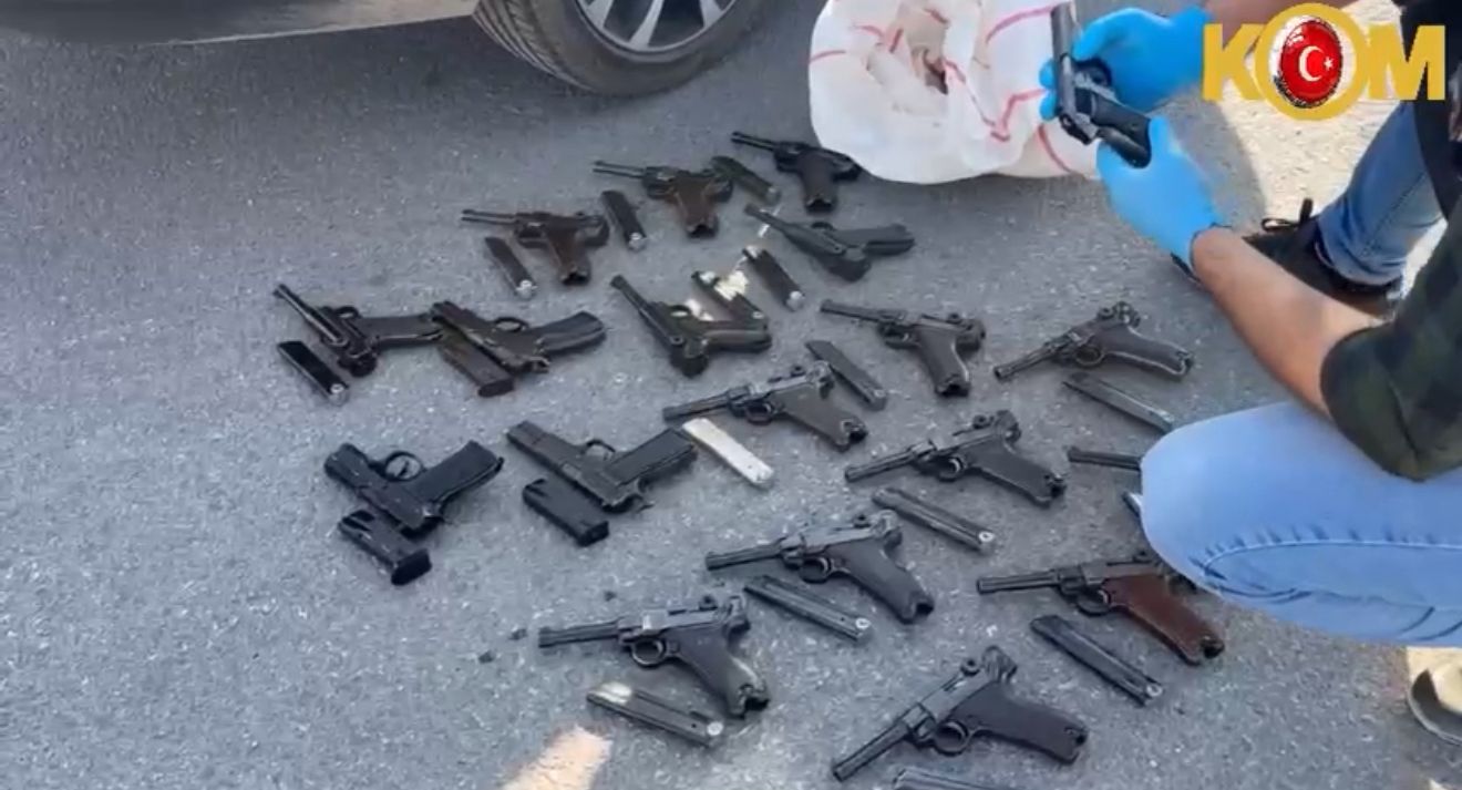 Şüphelinin kullandığı araçta yapılan aramalarda; 21 adet ruhsatsız tabanca ele geçirildi.