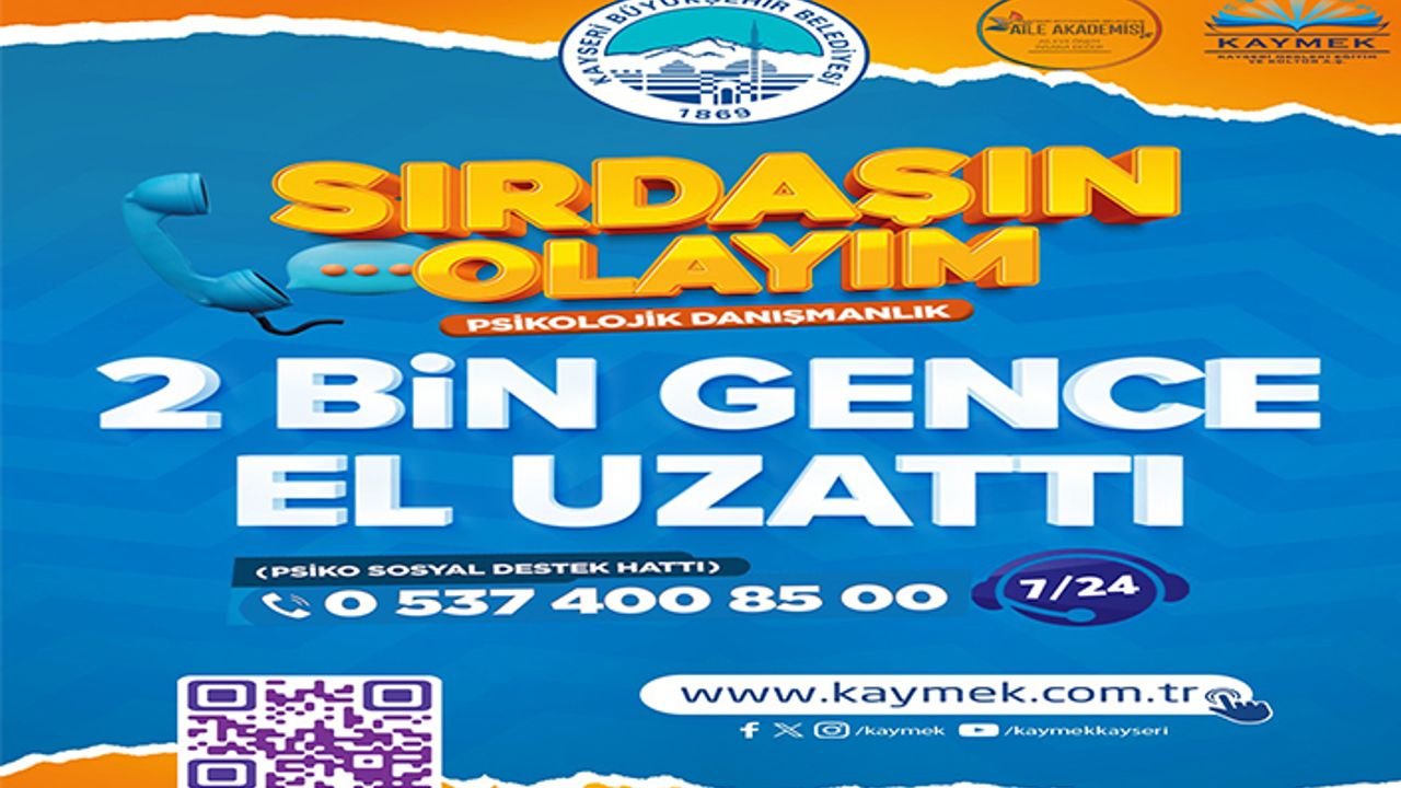 Kayseri Büyükşehir Belediyesi’nin gençlere yönelik hassas ve önemli hizmeti ‘Sırdaşın Olayım’, gençlerin psikolojik anlamdaki sıkıntılarına sırdaş olarak yardım ederken, bu hizmet gençler tarafından ilgi görmeye devam ediyor.