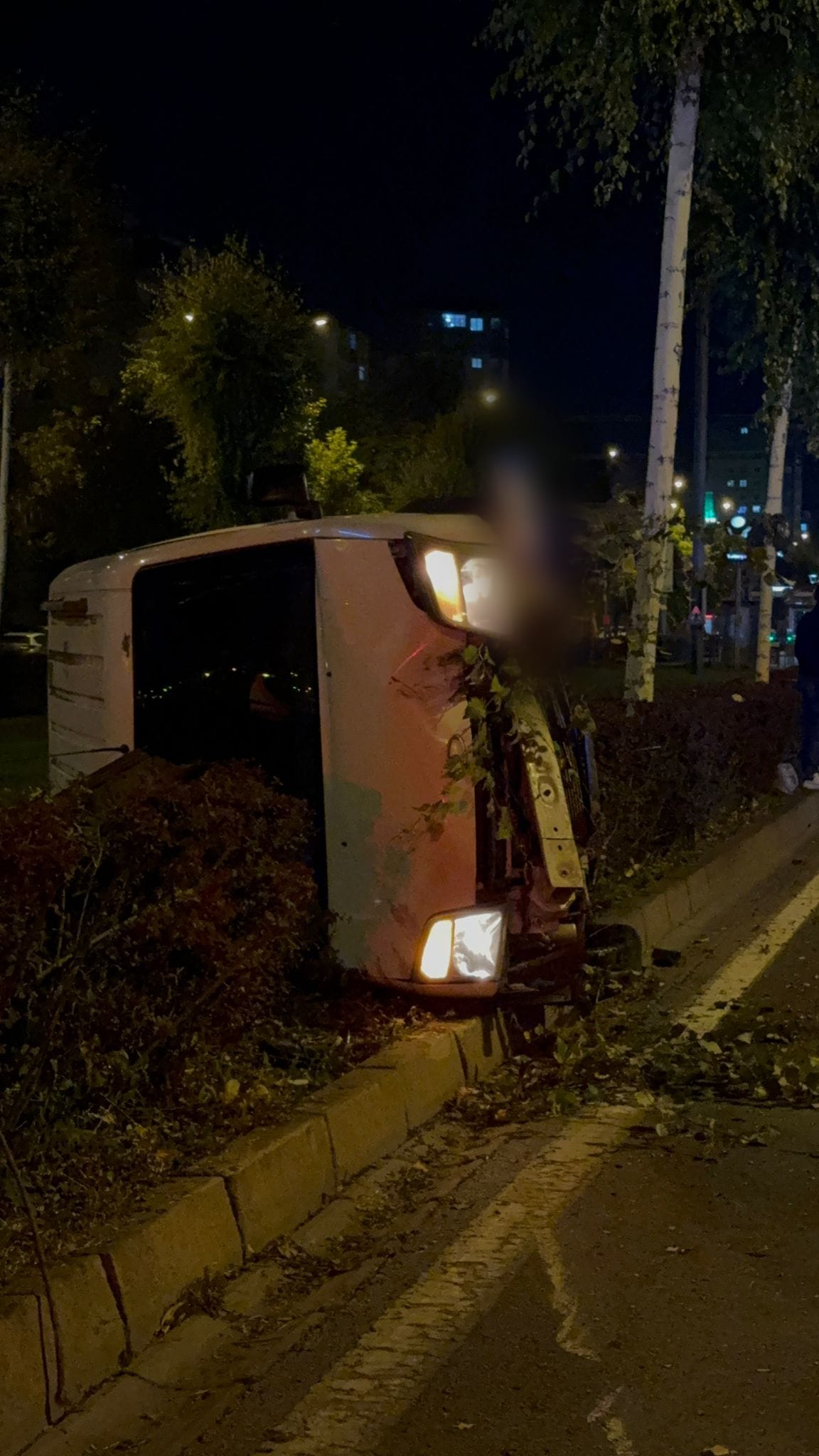 Kaza, saat 23.30 sıralarında Melikgazi ilçesine Sakarya Mahallesi İsmail Erez Bulvarı üzerinde Sakarya Tramvay Durağı yakınlarında meydana geldi. F.P. yönetimindeki hafif ticari araç, sürücüsünün direksiyon hakimiyetini kaybetmesi sonucu tramvay hattına girerek yan yattı. İhbar üzerine kaza alanına sağlık ve polis ekipleri sevk edildi. Araç sürücüsü F.P.'nin 1.51 promil alkollü olduğu belirlendi. Kazada yaralanan olmazken araç ağır hasar aldı. Tramvay seferlerinde bir süre aksaklık yaşandı. Kazaya karışan araç, çekici yardımıyla alandan çekildi.