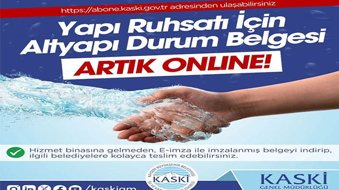 KASKİ Genel Müdürlüğü vatandaşların belediyelerden yapı ruhsatı alma aşamasında talep edilen ‘Altyapı Durum Belgesi’nin artık online olarak temin edilebileceğini duyurdu.