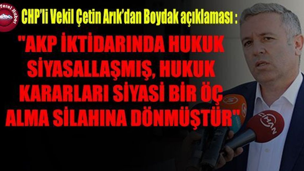 Adalet ve Kalkınma Partisi iktidarında hukukun bir öç alma silahına döndüğünü ifade eden Arık, “Hayırseverliğine yüzlerce kez şahadet ettiğiniz Boydak Ailesi’ne reva görülen bu durum can çekişen Türkiye ekonomisini nasıl etkileyecek, bir türlü önüne geçilemeyen işsizlik konusuna nasıl bir katkı sağlayacaktır” diye sordu.
