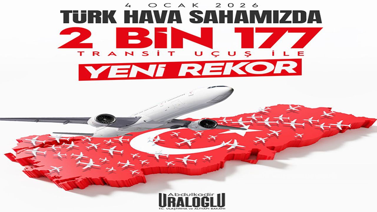 Ulaştırma ve Altyapı Bakanı Abdulkadir Uraloğlu, tüm zamanların en yüksek günlük transit uçuş sayısına 4 Ocak’ta ulaşıldığını belirterek, “4 Ocak’ta 2 bin 177 transit uçuş ile tüm zamanların en yüksek günlük transit uçuş sayısına ulaştık. Bu başarıyla, 31 Ağustos 2025’te kaydedilen bin 906 uçuşluk önceki rekoru geride bıraktık” dedi.