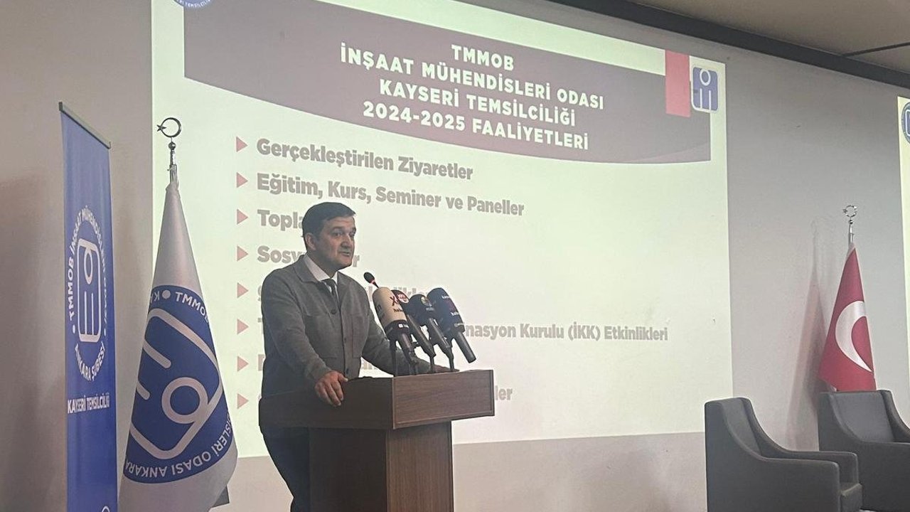 TMMOB İnşaat Mühendisleri Odası Kayseri Temsilciliği tarafından seminer düzenlendi. Düzenlenen seminere , İnşaat Mühendisleri Odası Kayseri Temsilciliği Yönetim Kurulu Başkanı Kamuran Arı ,Yönetim Kurulu üyeleri ve inşaat mühendisleri katıldı. Kayseri’de sismik izolatörlerle ilgili yapıların yaygınlaşmaya başladığını belirten Başkan Arı, “Ülkemizde sismik izolatörlerin kullanımı yaygınlaştı. Kayseri’de Erciyes Üniversitesi eski spor salonu yıkıldı. Eski yapının yerine şimdi sismik izolatörlü 800 yataklı bir hastane yapımı için adım atıldı. 390 sütun üzerine inşa edilecek ve 390 sismik izolatör kullanılacak. Kayseri’de özellikle sismik izolatörlerle ilgili yapıların yaygınlaşmaya başladığını görüyoruz. 2011 yılında, Sağlık Bakanlığı özellikle 100 yataklı hastanelerin üzerinde olan yapıların izolatörle yapılmasını şart koştu. Baktığımız zaman genellikle yapılarda bu uygulamaları görmeye başlayacağız. Özellikle Japonya’da çok yüksek şiddetli depremlerde bile yapılar hasar almadan ayakta kalıyor. İnsanlar işlerine deprem anında bile devam edebiliyor. Biz özellikle Kayseri’deki projeci meslektaşlarımıza öncü olmak istiyoruz. Onları sismik izolatörlerle ilgili erken adım atıp bu gelişmelerde önder olabilmeleri odamız adına çok önemli. Birini takip ederseniz onun önüne geçmeniz imkansızdır. Bizlerin daha büyük adımlar atarak öne geçmemiz ve önder olabilmemiz gerekir. Burada hocalarımızdan alacağımız bilgiler sismik izolatör üreten, uygulamasını yapan firmalarımızın temsilcilerinin burada olması sizler için büyük bir şans. Onlarla bağlantı kurabilmeniz onlarla tanışmanızın sizler için ilerleyen dönemde önemli olacağını düşünüyorum.