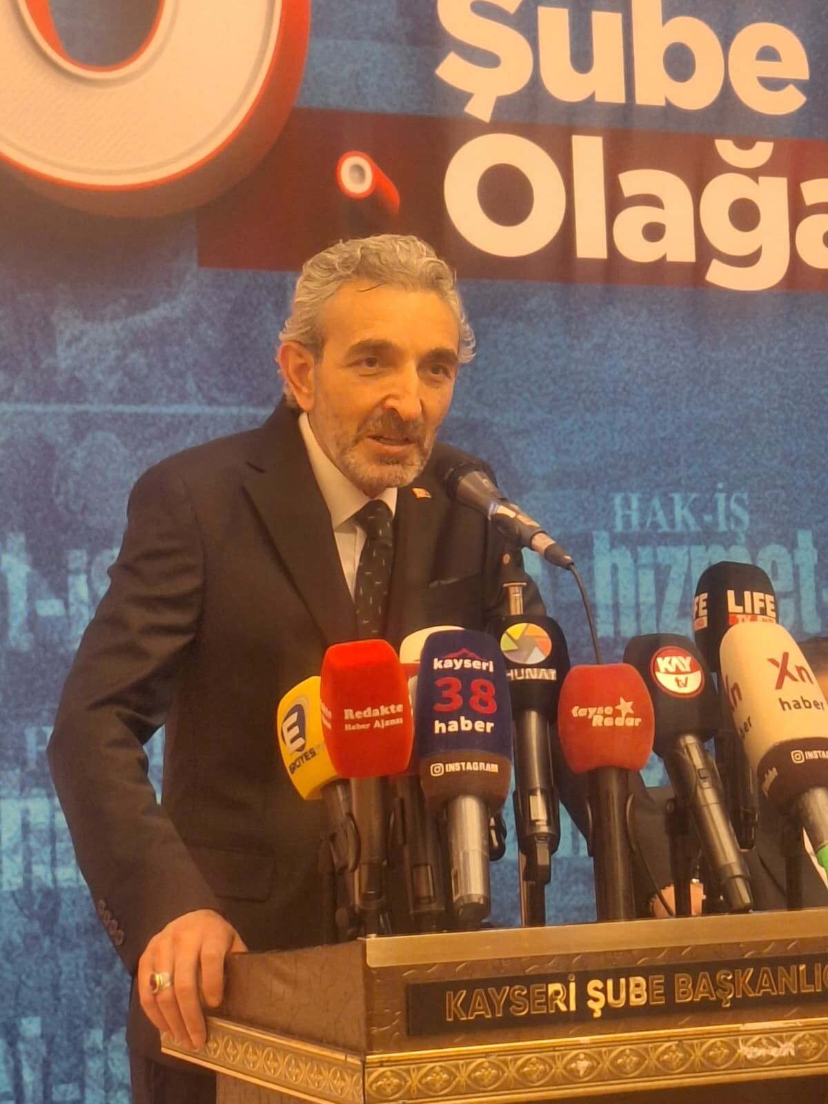 Hak-İş Hizmet-İş Sendikası Kayseri Şube Başkanlığı’nın 10. Olağan Genel Kurulu’na; Büyükşehir Belediye Başkanı Memduh Büyükkılıç, Melikgazi Belediye Başkanı Mustafa Palancıoğlu, Talas Belediye Başkanı Mustafa Yalçın, Hak-İş Konfederasyonu ve Hizmet-İş Sendikası Genel Başkanı Mahmut Arslan, Hizmet-İş Sendikası Kurucu Genel Başkanı Hüseyin Tanrıverdi, Genel Başkan Vekili Halil Özdemir, Hak-İş Hizmet-İş Sendikası Kayseri Şube Başkanı ve başkan adayı Yavuz Navruz, genel başkan yardımcıları, yönetim kurulu üyeleri, STK temsilcileri ve işçiler katıldı.