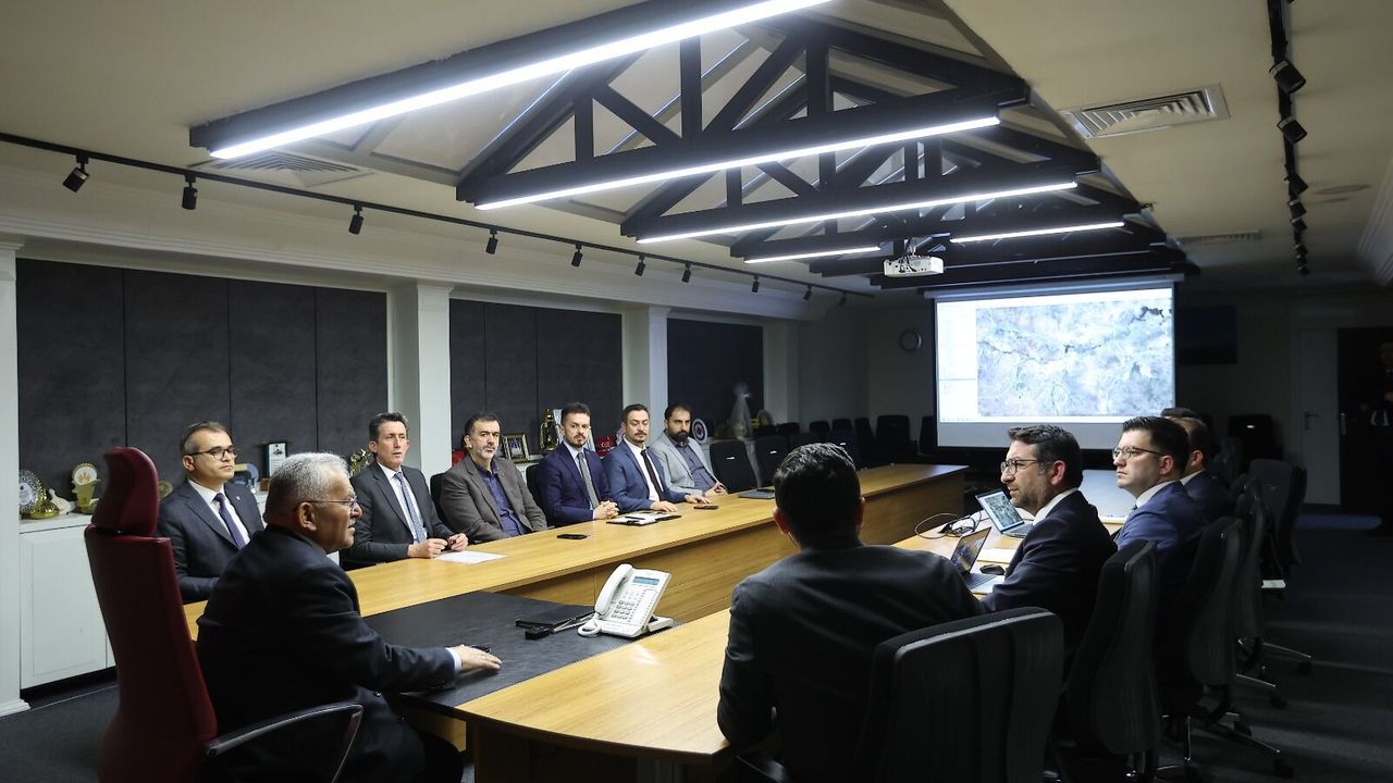 Kayseri Büyükşehir Belediye Başkanı Memduh Büyükkılıç, ulaşım projeleri ve şehir vizyonuna ilişkin kapsamlı bir toplantı gerçekleştirdi. Erkilet tramvay hattından hızlı tren çalışmalarına, otoyol projesinden akıllı şehir uygulamalarına kadar birçok başlığın ele alındığı toplantıda Büyükkılıç, “Kayseri’nin ulaşım geleceğini bugünden planlıyoruz” dedi.