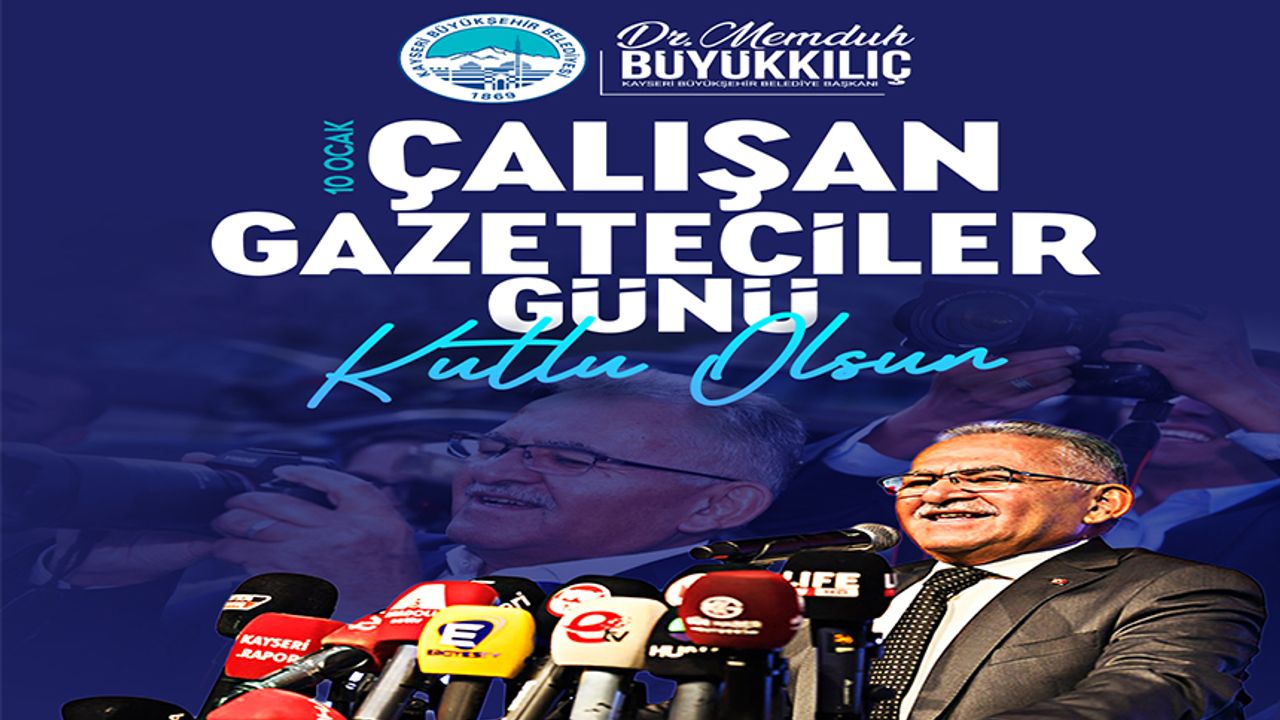 Kayseri Büyükşehir Belediye Başkanı Dr. Memduh Büyükkılıç, 10 Ocak Çalışan Gazeteciler Günü dolayısıyla yayımladığı mesajında, basının demokratik toplumların vazgeçilmez unsuru ve vicdanı olduğunu vurgulayarak tüm basın emekçilerinin gününü kutladı.