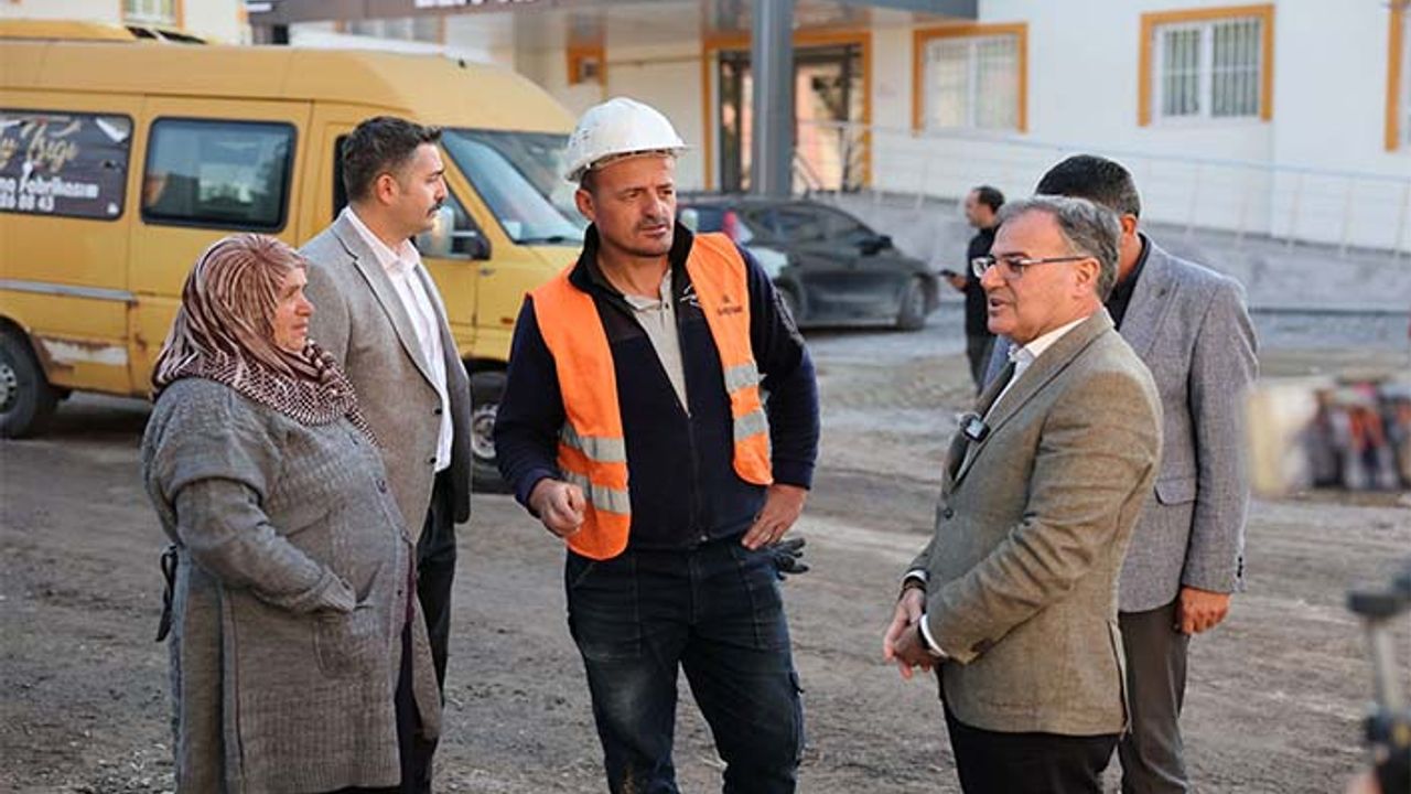 İncelemeler sırasında yetkililerden bilgi alan Başkan Özdoğan, “552 konutumuzun çevre düzeninde yapılan son çalışmaları gözlemlemek adına TOKİ teknik ekibi, yüklenici firma ve belediyemiz ekipleriyle birlikte sahada incelemelerde bulunduk. Çevre düzenlemeleri, yeşillendirme çalışmaları, okul yolu ve bağlantı yollarının güvenli hale getirilmesi gibi konuları yerinde değerlendirdik. Daha önce tamamladığımız bloklarla ikinci etap TOKİ konutları arasındaki bağlantı alanlarında da incelemelerde bulunduk. İnşallah kış kendini hissettirmeden önce bu bölgedeki tüm çalışmaları tamamlamayı hedefliyoruz” şeklinde konuştu.