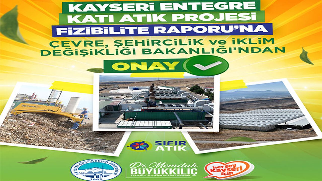 Çevre, Şehircilik ve İklim Değişikliği Bakanlığı tarafından Kayseri Entegre Katı Atık Projesi Fizibilite Raporu’nun onaylandığını duyuran Büyükşehir Belediye Başkanı Dr. Memduh Büyükkılıç, “Saygıdeğer Emine Erdoğan Hanımefendi'nin himayelerinde bir dünya markası hâline gelen sıfır atık hareketine uygun olarak planlanan Kayseri Entegre Katı Atık Projesi Fizibilite Raporu onaylandı. Çevre, Şehircilik ve İklim Değişikliği Bakanlığı tarafından verilen onay hayırlı olsun” diye konuştu.