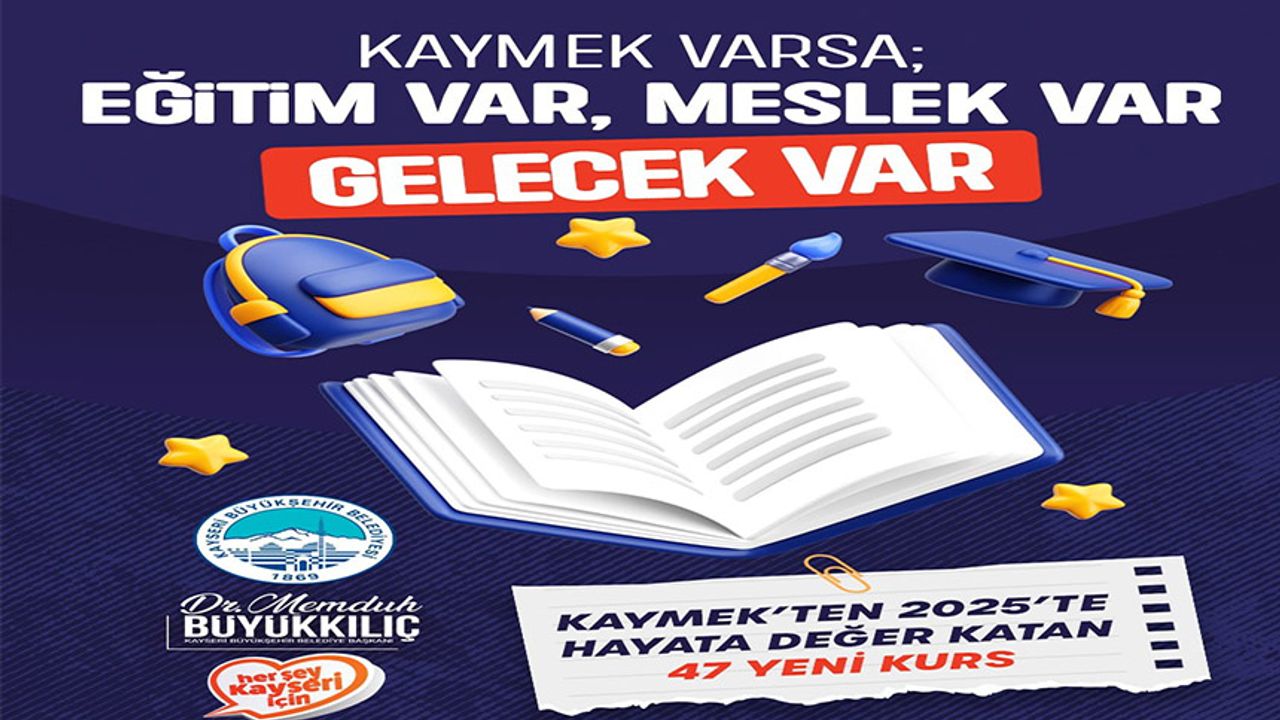 Büyükşehir Belediyesi bünyesinde mesleki eğitim, kurs ve kültür sanat faaliyetlerini başarıyla sürdüren Kayseri Mesleki Eğitim ve Kültür A.Ş. (KAYMEK), 2025 yılında hayata geçirdiği yeni kurs programlarıyla eğitimde önemli rol üstlendi. Sosyal belediyecilik anlayışı doğrultusunda, vatandaşlara doğrudan hizmet sunan KAYMEK; Millî Eğitim Bakanlığı Hayat Boyu Öğrenme Kurumları Yönetmeliği çerçevesinde, Halk Eğitim Merkezleri ile koordineli şekilde faaliyetlerini sürdürüyor. Eğitimden istihdama, kişisel gelişimden kültür sanata kadar geniş bir alanda hizmet veren KAYMEK, kursiyerlere Türkiye genelinde geçerli MEB onaylı kurs bitirme belgesi sunuyor.