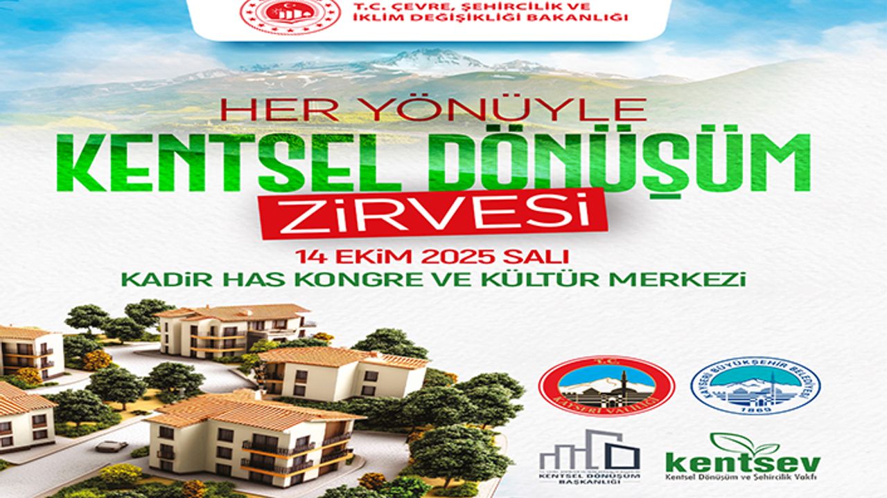 Kayseri Büyükşehir Belediyesi’nin ev sahipliğinde, Çevre, Şehircilik ve İklim Değişikliği Bakanlığı, Kentsel Dönüşüm Başkanlığı, Kentsel Dönüşüm ve Şehircilik Vakfı (KENTSEV) iş birliğiyle ve Fırat Plastik’in sponsorluğunda düzenlenecek olan “Her Yönüyle Kentsel Dönüşüm Zirvesi”, 14 Ekim 2025 Salı günü Kadir Has Kongre Merkezi’nde gerçekleştirilecek.