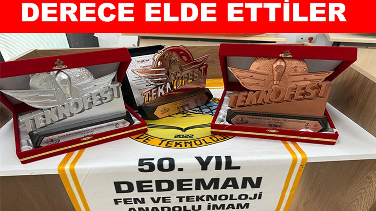 Kayseri 50. Yıl Dedeman Fen ve Teknoloji Anadolu İmam Hatip Lisesi öğrencileri, geliştirdikleri projelerle Teknofest’te önemli başarılara imza attı. 3 ayrı kategoride derece elde eden öğrenciler kırsal alanda ürettikleri projeyle, İnsansız Su Altı Sistemleri Yarışması’nda en özgün tasarım ödülünü alarak ön plana çıktı. Lise 2’nci sınıf öğrencisi Yakup Varol: “Denize ulaşımımız bulunmazken ilk defa denizde gerçekleştirilen bu yarışmada yer aldık ve en özgün tasarım ödülünü aldık” dedi.