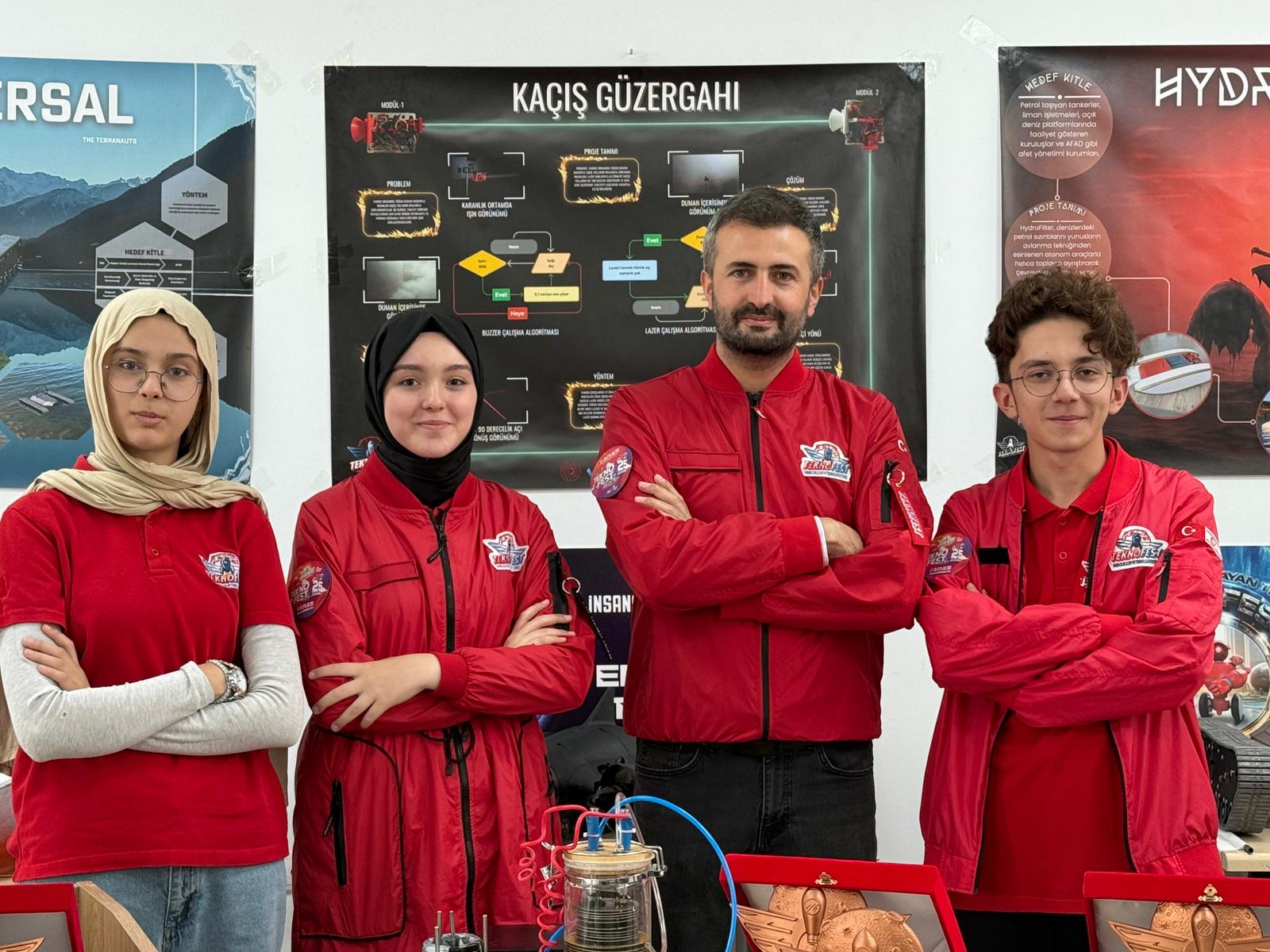 Kayseri’de eğitim veren 50. Yıl Dedeman Fen ve Teknoloji Anadolu İmam Hatip Lisesi öğrencileri, geliştirdikleri projelerle Teknofest’te önemli başarılara imza attı. Henüz okulun üçüncü yılında birçok ödül kazanan öğrenciler, su altı aracı, hidrojenle çalışan sistemler ve robotik projeleriyle Türkiye genelinde dikkat çekti. Teknofest İstanbul ve KKTC’deki yarışmalarda yer alan öğrenciler, 8 farklı proje ile toplam 4 ödül kazandı. Gençler, Kayseri’den ulusal ve uluslararası platformlara taşıdıkları projelerle hem özgün tasarım hem de Türkiye dereceleri elde etti. 50. Yıl Dedeman Fen ve Teknoloji Anadolu İmam Hatip Lisesi 10’uncu sınıf öğrencisi Yakup Varol sualtı projesi ile ilgili açıklamalarda bulunarak: “Burada ödül alan projelerimiz bulunmakta. Okulumuzun 3. senesi ve 3 senedir yoğun bir şekilde proje geliştiriyoruz. Bu sene derece aldığımız projelerden birinden bahsetmek istiyorum, sualtı aracımız. Kayseri'deyiz ve burada herhangi bir şekilde denize ulaşımımız bulunmazken ilk defa denizde gerçekleştirilen bu yarışmada yer aldık ve en özgün tasarım ödülünü aldık. Aracımızın bir robot kolu bulunuyor ve yarışma sürecinde araca dışarıdan bakamıyoruz. İçerisindeki kamerayla kumandanın yönetmesi su altındaki hedefleri toplaması gerekiyordu. Bu şekilde bir süreç gerçekleşti. Toplamda 20 finalist takım arasında en özgün tasarım ödülünü almış olduk” ifadelerini kullandı.