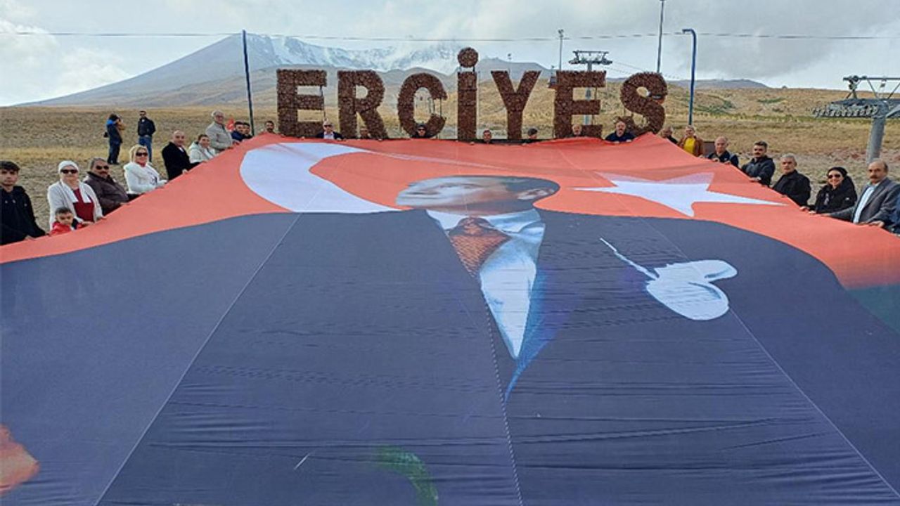 Cumhuriyet Bayramı 102’nci yıldönümü nedeniyle Kayseri’de çeşitli etkinliklerle kutlanmaya başlandı. Bu kapsamda Erciyes Dağı’nda 102 metrekare Atatürk posteri açılarak sergilendi.