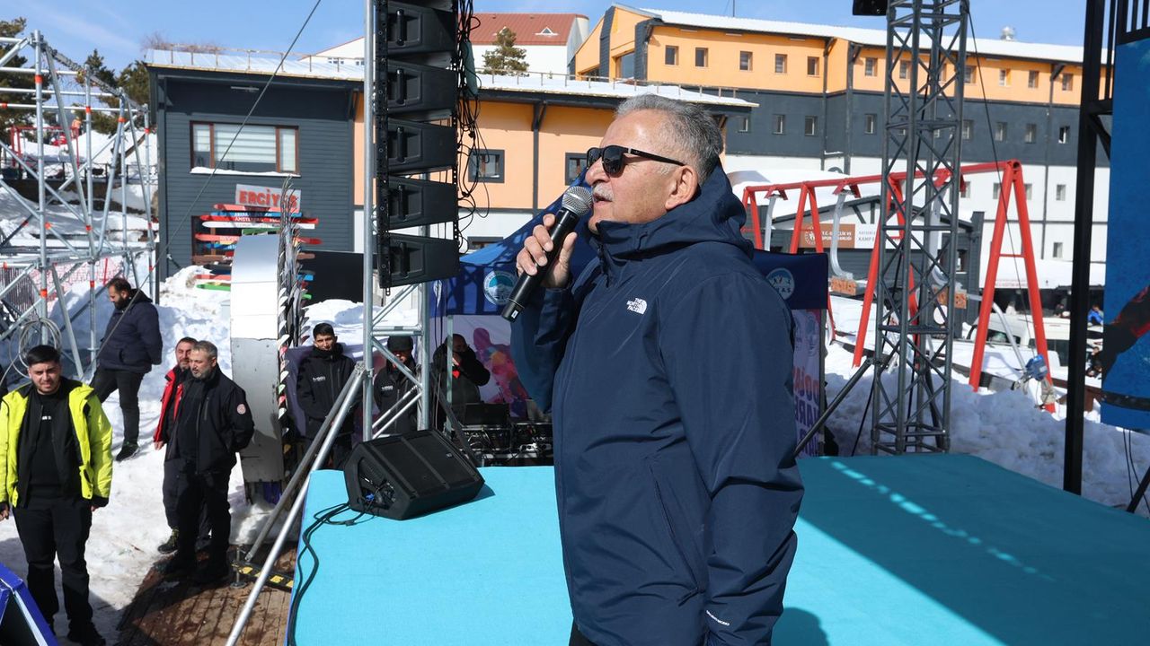“Bu güzel ortamı paylaşan, onurlandıran dostlarımızı saygıyla, sevgiyle, muhabbetle selamlıyorum. İyi ki varsınız, bugün eğlenme, keyifli ortamda bu güzel imkânlardan yararlanma günü. 18 Aralık’tan bu yana 3 milyonu geçen ziyaretçi sayısıyla, Mimar Sinan’ın Süleymaniye Camii eserine ilham olan Erciyes’imiz sizleri haşmetiyle, bereketiyle sizleri selamlıyor. İyi eğlenceler diliyorum.”