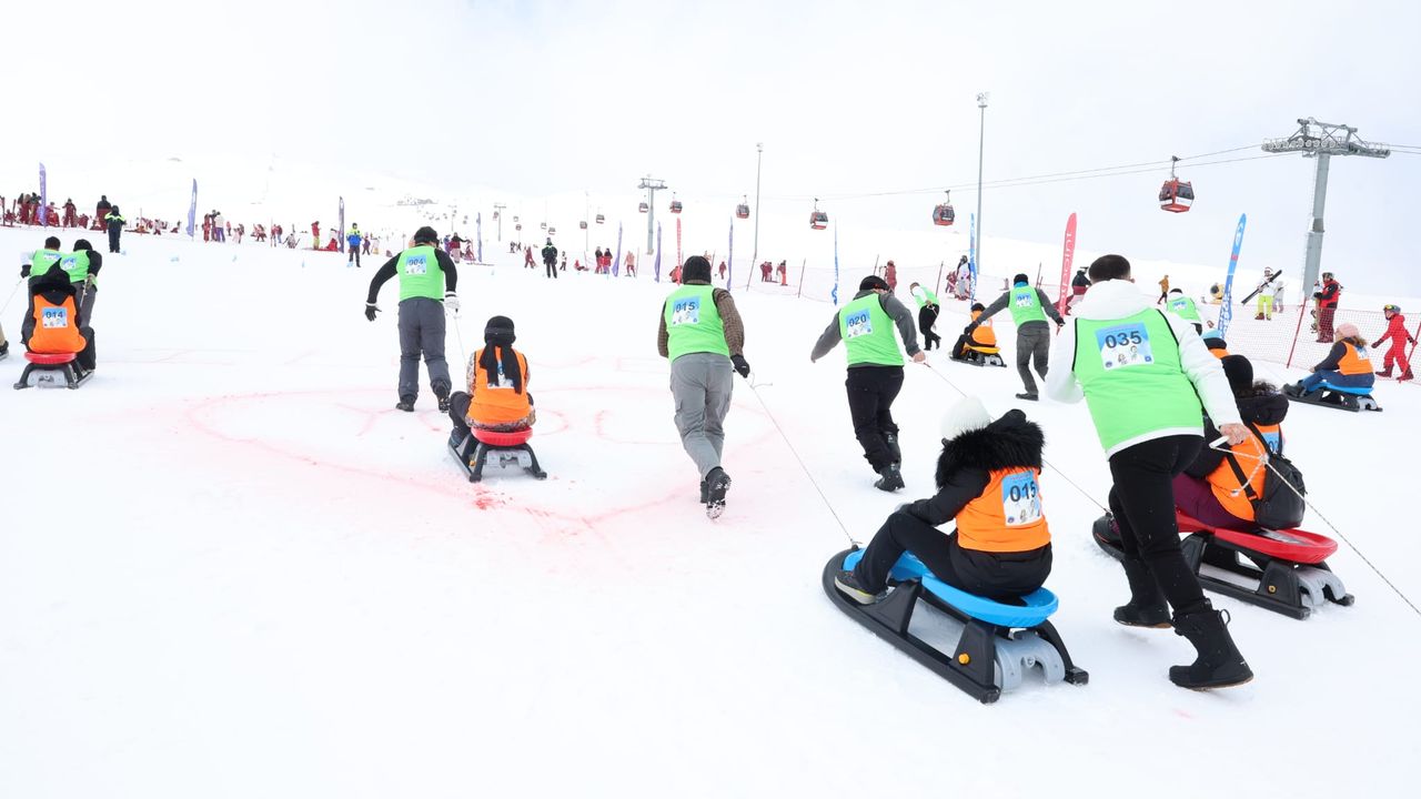 Türkiye'nin önemli kış turizm merkezlerinden Erciyes Kayak Merkezi'nde 14 Şubat Sevgililer Gününde eşler arası "Artık çekilmez oldun" kızak yarışması yapıldı.