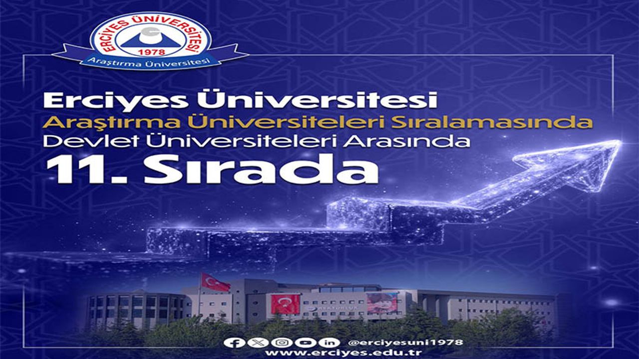 Araştırma Üniversiteleri Yıllık Değerlendirme Toplantısı’nda açıklanan 2024 performans sonuçlarına göre; Erciyes Üniversitesi devlet üniversiteleri arasında 11. sırada yer aldı.