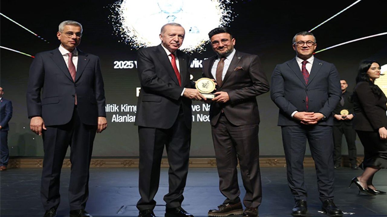 Prof. Dr. Erkan Yılmaz, ödülü Cumhurbaşkanı Recep Tayyip Erdoğan'ın elinden aldı.