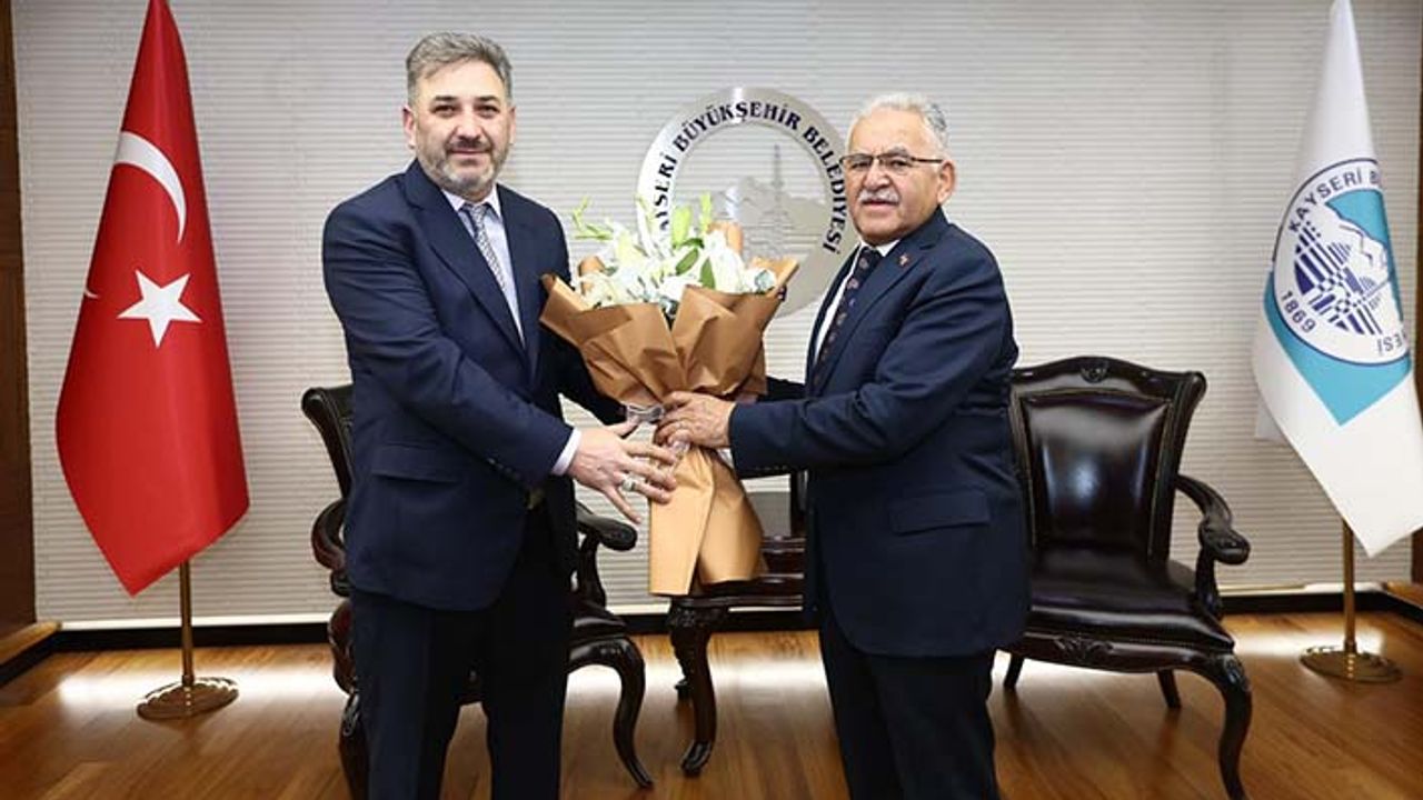 Kayseri Büyükşehir Belediye Başkanı Dr. Memduh Büyükkılıç, Hal İşletmeleri Başkanlığı’na yeni seçilen Sinan Taşpınar ve yönetim kurulu üyelerini makamında ağırladı. Başkan Büyükkılıç, esnafların her zaman yanında yer aldıklarını söylerken, Taşpınar da esnaf dostu bir belediye başkanı olan Başkan Büyükkılıç’a teşekkür ederek, şükranlarını sundu.