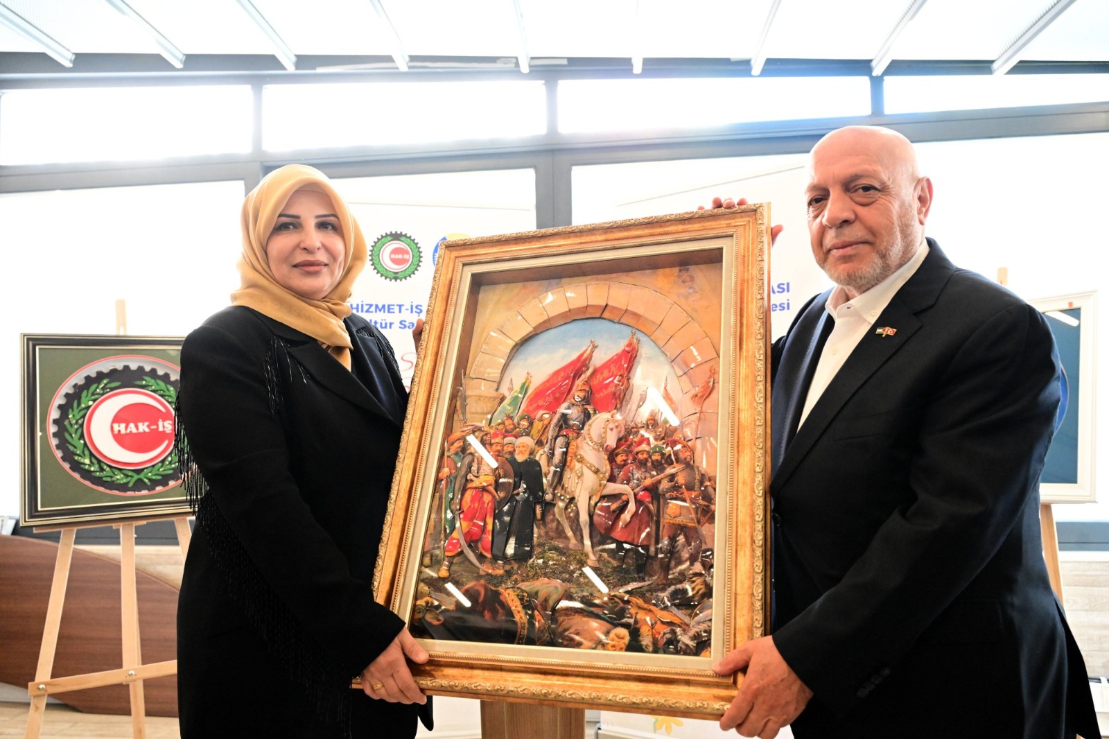 Başkan Arslan, “On yılı aşkın birikimle hazırlanan bu eserlerin maddi bir karşılığı olamaz. Burada amaç, emek ve dayanışmadır” dedi. Sanatçı Emine Özdemir’in aynı zamanda HİZMET-İŞ Sendikamızda Genel Başkan Vekilimiz Halil Özdemir’in eşi ve yol arkadaşı olduğunu da anımsatan Arslan, “Kendisine sendikal mücadeleye yaptığı katkılardan dolayı ayrıca teşekkür ediyorum. Bizim mücadelemiz yalnızca işçi haklarıyla sınırlı değil. Kültür ve sanat da bu mücadelenin ayrılmaz bir parçasıdır. Biz kültür ve sanatı sadece isminden bahsetmek ya da göstermelik bir faaliyet yapmak için değil, gerçekten inanarak ve samimiyetle yapıyoruz. Kültür ve sanatla sendikal hareketi nasıl buluşturabiliriz, sendikal mücadelede yeni yollar, yeni kanallar açabilir miyiz çabamız tamamen samimidir. Bu kolay bir iş değil. Çatık kaşlı, grevlerin, eylemlerin içinden gelen insanların kültür ve sanatla buluşmasını sağlamak zordur ama biz bunu yapmaya çalışıyoruz ve başarılı da oluyoruz” diye konuştu.