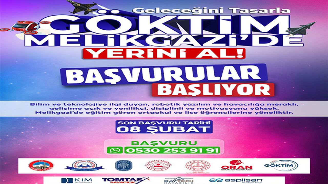 Kayseri Valiliği himayelerinde kurulan Gökyüzü Teknoloji ve İnovasyon Merkezi (GÖKTİM) kapsamında Melikgazi Belediyesi’nin Tınaztepe, Danişmentgazi ve Necip Fazıl Kısakürek Sosyal Tesislerinde gerçekleşecek olan GÖKTİM Melikgazi’de kayıtlar başladı.
