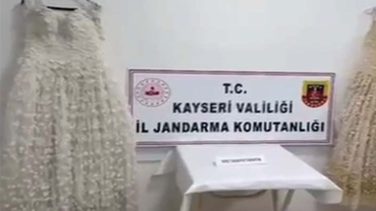 Kayseri İl Jandarma Komutanlığı ekipleri tarafından bir ay süren takip sonucunda İç Anadolu’nun en büyük operasyonu gerçekleştirildi. Dün şehrin girişinde, iki gelinlik üzerine boncuk şeklinde işlenmiş ve emdirilmiş 25 kilogram 400 gram metamfetamin ele geçirildi. Ele geçirilen maddenin değerinin 60 milyon lira olduğu belirlenirken, operasyon kapsamında şüpheliler gözaltına alındı.