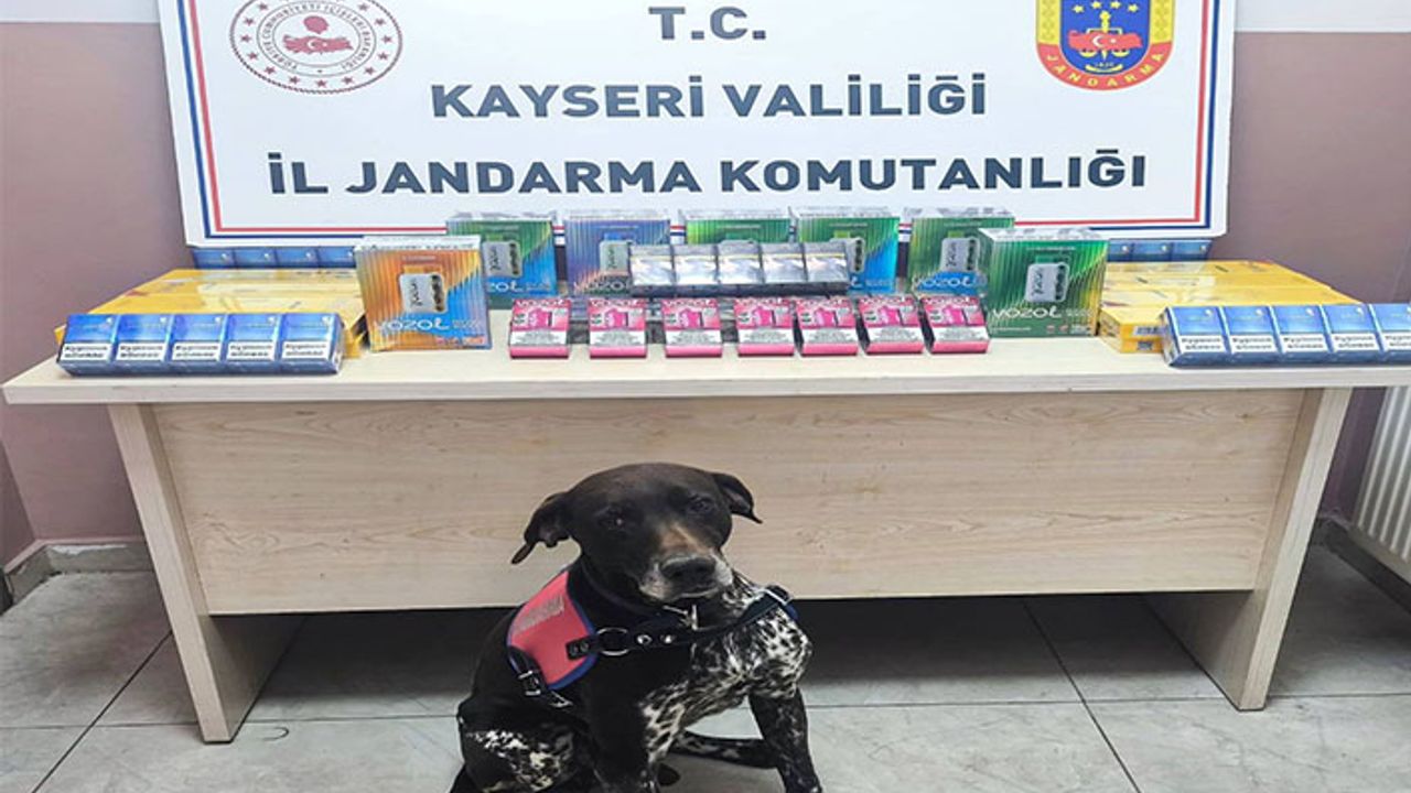 Kayseri İl Jandarma Komutanlığı KOM Ş.Md.lüğü ve Pınarbaşı İlçe J.K.lığınca icra edilen Kayseri-Malatya karayolu üzerinde gerçekleştirilen yol kontrol devriyesi esnasında durdurulan 2 ayrı tıra Çay ve Tütün tespit köpeğinin tepki vermesi sonucu toplam 250 paket bandrolsüz sigara ve 77 adet elektronik sigara ele geçirildi.