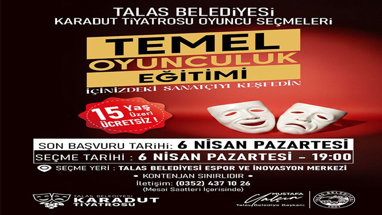 “Temel Oyunculuk Eğitimi” kapsamında gerçekleştirilen seçmelerde, 15 yaş ve üzeri