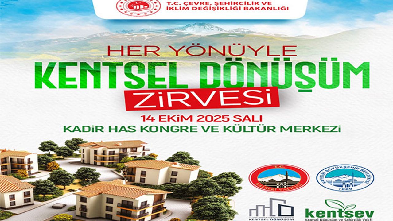 Kayseri Büyükşehir Belediyesi’nin ev sahipliğinde 14 Ekim 2025 Salı günü düzenlenecek olan “Her Yönüyle Kentsel Dönüşüm Zirvesi”, şehir ölçeğinde sürdürülebilir ve nitelikli dönüşüm modelleri geliştirilmesi hedefine odaklanacak.