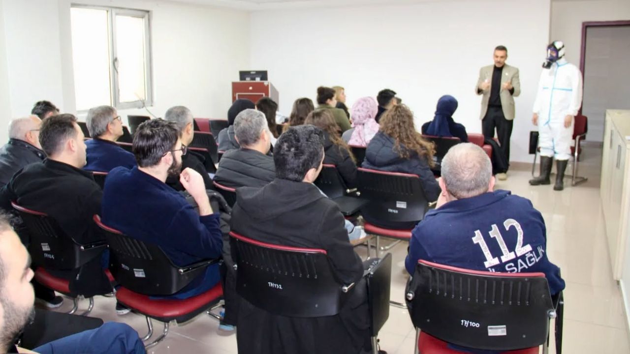 Kayseri Devlet Hastanesi Acil Servis personeline yönelik olarak “Hemovijilans ve KBRN (Kimyasal, Biyolojik, Radyolojik ve Nükleer Tehditler)” konularında eğitim verildi.