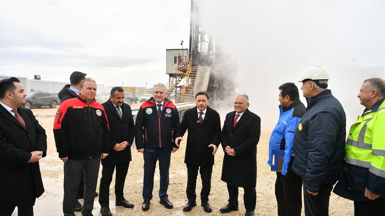 Kayseri Valiliği ve Kayseri Ticaret Borsası öncülüğünde hayata geçirilen Kayseri Kocasinan Tarıma Dayalı İhtisas Jeotermal Kaynaklı Sera Organize Tarım Bölgesi (OTB) Projesi, çalışmaları sürüyor. Toplam 1 milyon 237 bin metrekarelik alanda, yaklaşık 5 milyar TL’lik yatırımla Kayseri tarımı açısından stratejik öneme sahip olan Jeotermal Kaynaklı Sera OTB Projesi’nde 6. kuyudan da olumlu sonuç alındı. Bu kuyudan da sıcak suya ulaşılırken; Kayseri Valisi Gökmen Çiçek, Büyükşehir Belediye Başkanı Memduh Büyükkılıç, Tarım Reformu Genel Müdürü Dr. Osman Yıldız ve protokol üyeleri bölgeyi ziyaret ederek çalışmaların son durumu hakkında bilgi aldı.