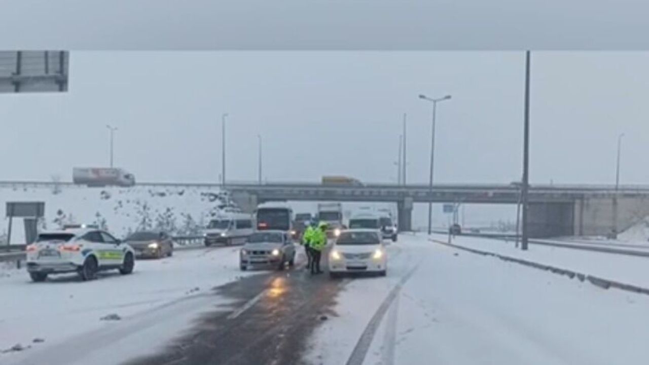 Kayseri/Ankara Karayolu: Hava kapalı, kar yağışı mevcut, zemin ıslak, yol trafiğe açık.