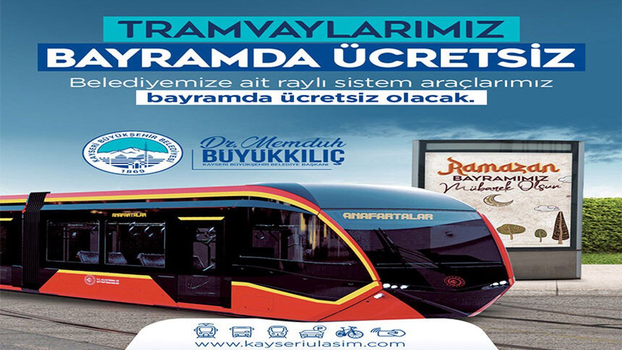 Kayseri Büyükşehir Belediye Başkanı Memduh Büyükkılıç, Kayseri’de Ramazan Bayramı süresince toplu ulaşımda önemli bir kolaylık sağlanacağını duyurarak, 20-21-22 Mart günlerinde tramvayların 3 gün boyunca ücretsiz hizmet vereceğini açıkladı.