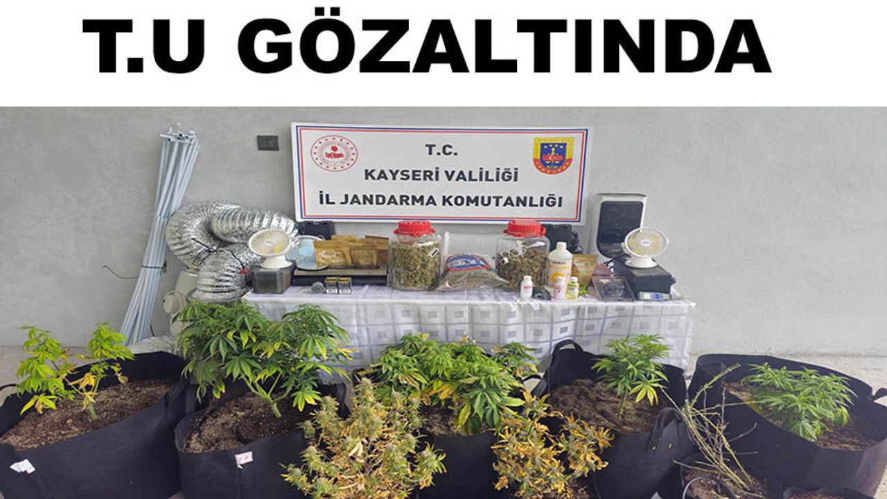 İl Jandarma Komutanlığı ekipleri, uyuşturucu ticareti yapan kişilerin yakalanmasına yönelik çalışma başlattı. Bu kapsamda T.U.'nun uyuşturucu ticareti yaptığı belirlendi. Şüpheli adresine düzenlenen operasyonda yakalandı. Adreste yapılan aramalarda 2 kilo 470 gram skunk, 10 kök Hint keneviri, iklimlendirme çadırı, aydınlatma sistemi, havalandırma sistemi, oda nemlendirici ve 1 adet soğutucu ele geçirildi. Gözaltına alınan şüpheli, Kocasinan İlçe Jandarma Komutanlığı'na götürüldü.