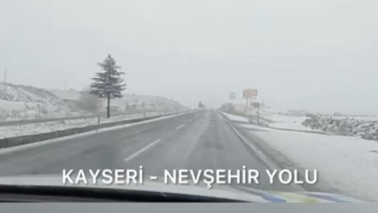 Kayseri–Nevşehir Karayolu, hava kapalı, kar yağışı mevcut, zemin ıslak, yol trafiğe açık.