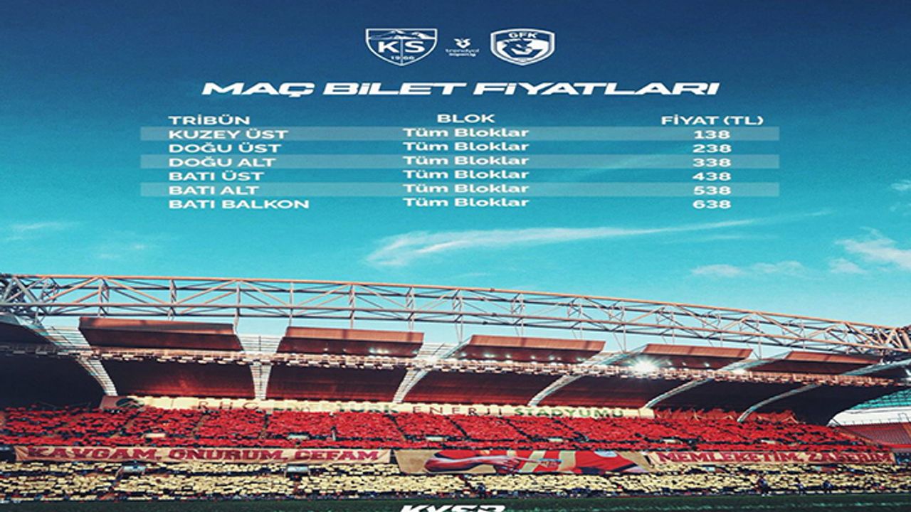 Kulüpten yapılan açıklamada, “Haydi Kayseri Maça! Kayserisporumuzun Süper Lig 2025-2026 Sezonu 13. haftasında 22 Kasım Cumartesi günü saat 14.30'da Gaziantep FK ile RHG Enertürk Enerji Stadyumu’nda oynayacağı karşılaşmanın biletleri Passo tarafından bugün saat 11.00'de satışa sunulacak. Kayseri İl Güvenlik Kurulu kararı gereğince misafir takım seyircisi maça alınmayacak. Kayseri İl Güvenlik Kurulu kararı gereğince son 90 gün içersinde Gaziantep FK logolu kartını iptal eden kişiler ev sahibi tribünlerden bilet/transfer alamayacaklardır” ifadelerine yer verildi.