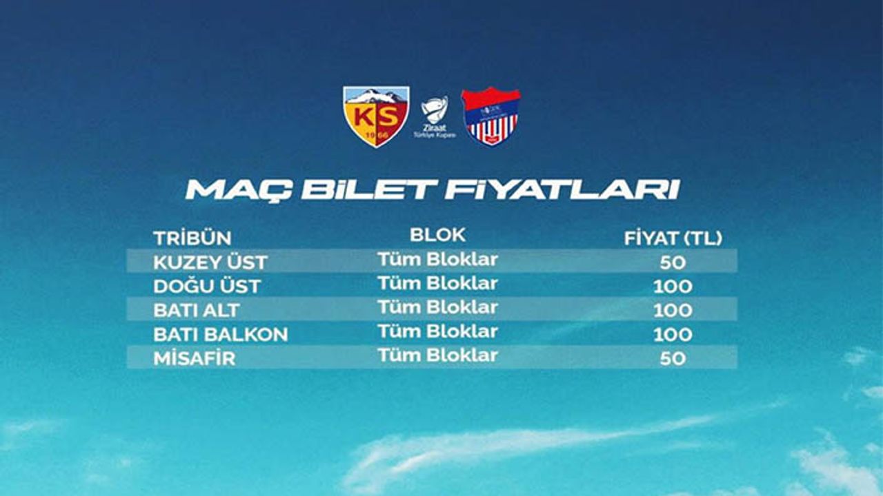 Kayserispor’un yarın Niğde Belediyesi Spor Kulübü ile oynayacağı Türkiye Kupası 3’üncü Tur maçının biletleri satışa çıktı.