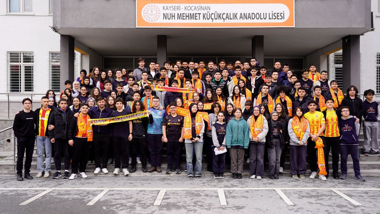 Kayserispor’da forma giyen Dorukhan Toköz, Bilal Bayazit, Talha Sarıarslan ve Nurettin Korkmaz, Nuh Mehmet Küçükçalık Anadolu Lisesi öğrencileriyle “Bağımlılığa Karşı Mücadele” söyleşisinde buluştu. Okul bahçesinde çiçekler ve meşalelerle karşılanan futbolcular, gençlerle samimi bir ortamda bir araya gelerek sporun ve sağlıklı yaşamın önemine dikkat çekti. Bağımlılıkla mücadelede bilinçli olmanın gerekliliğini vurgulayan sporcular, öğrencilere disiplinli çalışmanın ve doğru arkadaş çevresinin hayatlarındaki belirleyici rolünü anlattı. Söyleşi sonunda öğrenciler, futbolculara atkı ve formalarını imzalattı. Etkinlik, hatıra fotoğraflarının çekilmesiyle sona erdi.
