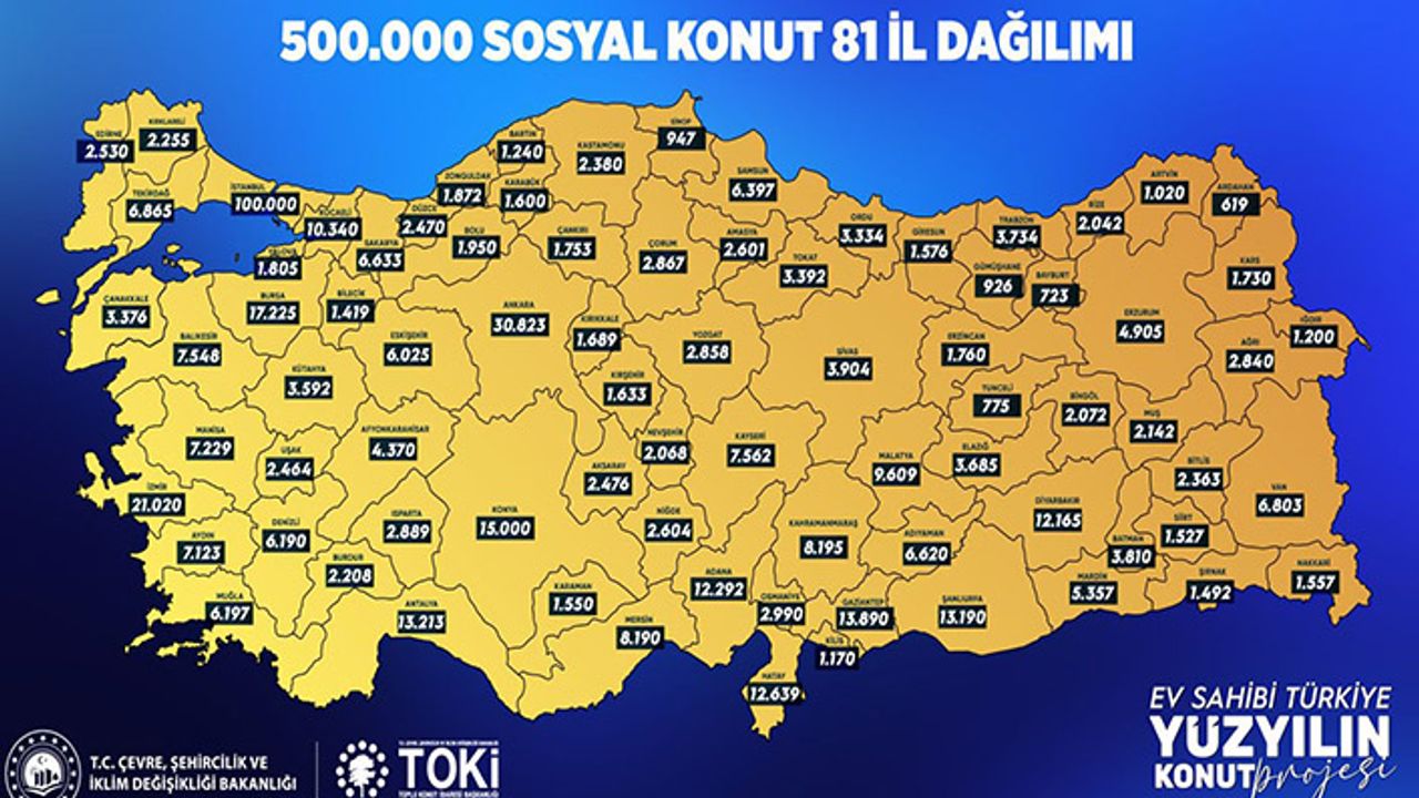Çevre, Şehircilik ve İklim Değişikliği Bakanı Murat Kurum, 500 bin sosyal konutun 81 ildeki dağılımını açıkladı. Buna göre proje kapsamında Kayseri’ye 7 bin 562 konut yapılacak.
