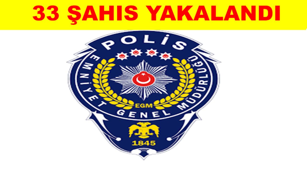 Ayrıca 33 aranan şahıs yakalanırken, 8 yoklama kaçağı şahsa gerekli işlemler yapıldı. Yapılan aramalarda, 2 adet ruhsatsız tabanca, 2 adet ruhsatsız tüfek, 1 adet kuru sıkı tabanca, 30 adet fişek ele geçirildi. 1 sürücüye alkollü araç kullanmaktan işlem yapılırken 2 araç trafikten men edildi.