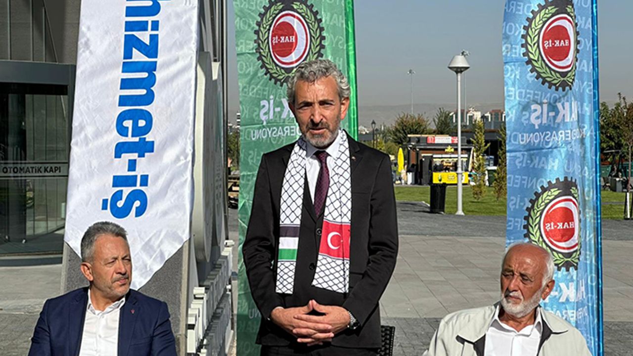 HAK-İŞ Konfederasyonu İl Başkanı ve Hizmet-İş Sendikası Kayseri Şube Başkanı Yavuz Navruz, dünyada zulmün en açık şekilde yaşandığı yerlerden biri hiç şüphesiz ki Filistin olduğunu ifade ederek, “Yine Konfederasyonumuzun en güçlü sendikalarından biri olan Hizmet-İş Sendikamızın yaklaşık 300 bin üyesiyle Türkiye’nin dört bir yanında emekçinin yanında dimdik durması bizlere büyük bir güç vermektedir. Bugün dünyada zulmün en açık şekilde yaşandığı yerlerden biri hiç şüphesiz ki Filistin’dir. Orada masum çocukların, kadınların, yaşlıların katledilmesi, evlerin yıkılması, toprakların gasp edilmesi hepimizin yüreğini dağlamaktadır. Kayseri’den yükselen sesin, Gazze’de yankı bulacağına yürekten inanıyorum” dedi.