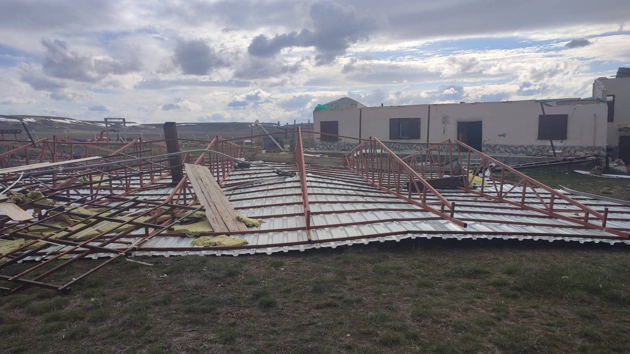 Kayseri’nin Pınarbaşı ilçesinde şiddetli rüzgar, müstakil evin çatısını uçurdu.