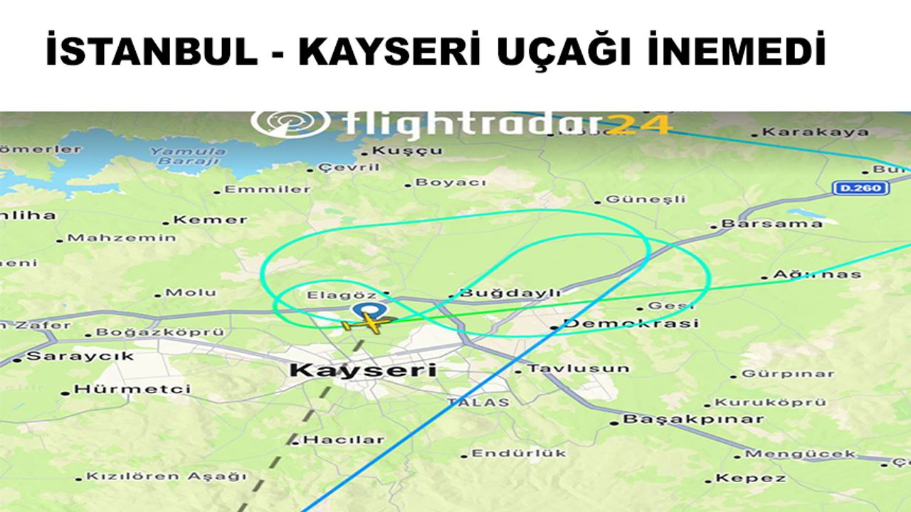 Kayseri’de etkisini gösteren şiddetli rüzgar nedeniyle İstanbul-Kayseri seferini yapan uçak iniş gerçekleştiremedi.