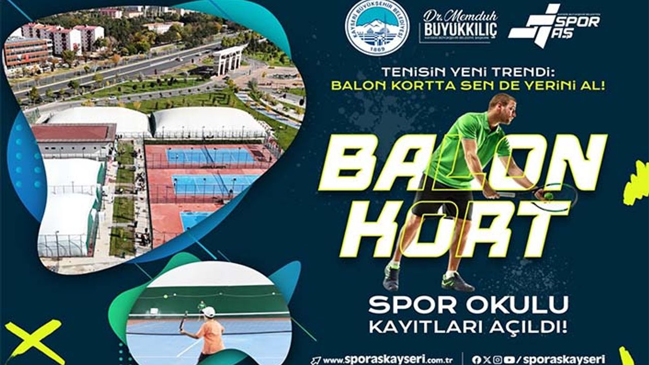Kayseri’de tenisin yeni trendi Balon Kortta gerçekleşecek tenis spor okuluna kayıt yaptırmak isteyen tenis severler, www.sporaskayseri.bel.tr internet adresi üzerinden kayıt işlemlerini gerçekleştirebilecekler.
