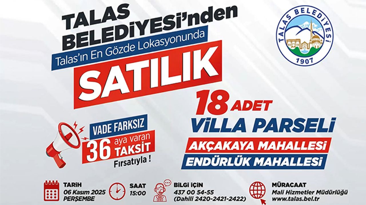 Talas Belediyesi, ilçenin en gözde lokasyonlarında yer alan villa parsellerini satışa