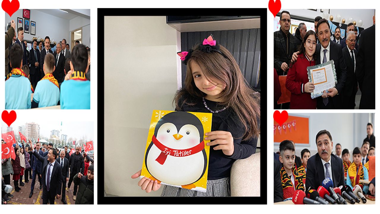 Öğretmenlerimiz insanüstü bir gayretle çalışıyor. Milli Eğitim’imiz dur durak bilmeden okul okul, ilçe ilçe, köy köy geziyor. Biz şanslı bir iliz; yerel yöneticiler, kamu idarecileri, kaymakamlarımız el ele eğitim için her şeyi ortaya koyuyorlar. Ve dolayısıyla hiçbirimizin ayrısı gayrısı olmadan Kayseri eğitiminin, Kayserili çocukların Türkiye’nin geleceğine damga vurması, Türkiye’nin geleceğinde parlaması için el ele büyük bir mücadele veriyoruz. Başarı varsa hepimizin, eğer bir başarısızlık bir hüzün varsa o da bizim. Dolayısıyla sizler bu milletin geleceğisiniz. Evlatlarınız sadece sizlerin evlatları değil, koskoca Türk milletinin evladı, Türk milletinin geleceği. O yüzden evlatlarınızla ilişkilerinizde sadece kendi yavrunuz değil bir milletin geleceği olarak değerlendirmenizi hassaten rica ediyorum. Bu tatil döneminde çocuklarımız hem dinlenerek hem de kitaplarıyla dolu bir dünyayı 15 gün evlerine alarak ama aynı zamanda maçlar yaparak, futbol oynayarak, basketbol oynayarak, şehrin her yerini dolaşarak geçirmesini özellikle istiyorum. 15 tatil sonrası yine aynı coşkuyla sıraları doldurmalarını bekliyorum” şeklinde konuştu.