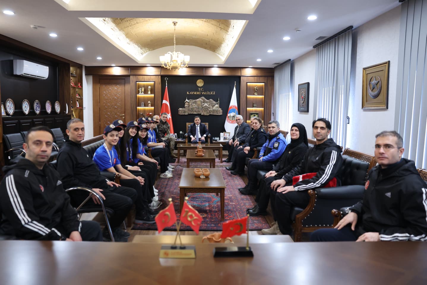 Vali Gökmen Çiçek, Türkiye Büyükler Tekvando Şampiyonası’nda derece elde eden Emniyet ERVA Spor Kulübü sporcu ve antrenörlerini makamında kabul etti. Kabulde, İl Emniyet Müdürü Atanur Aydın, önceki dönem Kocasinan Belediye Başkanı Bekir Yıldız ve hayırsever iş insanı Saffet Arslan da hazır bulundu. Vali Çiçek, sporcularla tek tek ilgilenerek elde edilen başarıların Kayseri ve Türkiye adına büyük bir gurur kaynağı olduğunu ifade etti.
