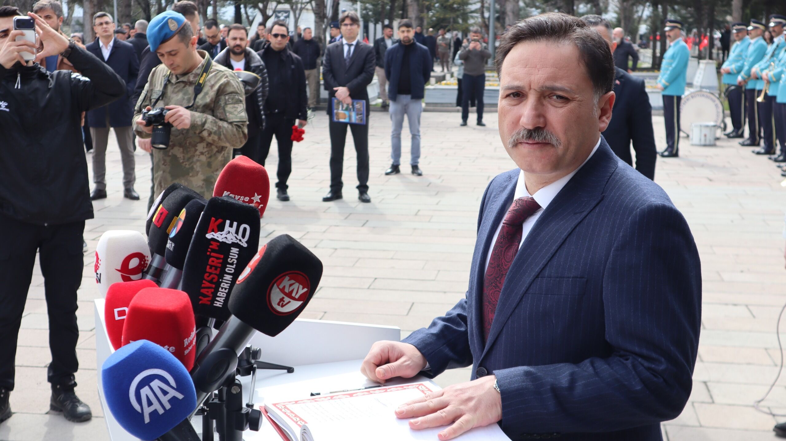 Kartal Şehitliği’nde düzenlenen törene, Vali Gökmen Çiçek, Büyükşehir Belediye Başkanı Memduh Büyükkılıç, Garnizon Komutanı Kadircan Kottaş, kurum müdürleri, siyasi partilerin temsilcileri, gaziler ve şehit yakınları katıldı. Şehitlik anıtına çelenk takdimi ve saygı duruşunda bulunuldu. Törende konuşan Türkiye Harp Malulü Gaziler Şehit Dul ve Yetimleri Derneği Kayseri Şube Başkanı Ali Yavuz, “Çanakkale bir savaşın çok ötesinde 7 düvele karşı binlerce vatan evladının istiklal ve İstikbal sevdasıyla çağrıldığı mukaddes bir cephedir. Vatan müdafaası uğruna cepheye koşan kahramanlarımızın yazdığı büyük bir varoluş destanıdır. 1915 yılında dünyanın en güçlü donanmalarına sahip olan devletlerin karşısında duran bir millet vardı. O gün cephede belki silahımız azdı. Cephemiz sınırlıydı. Fakat yüreklerimizdeki iman vatan millet sevgisi hiçbir kuvvetle ölçülemeyecek kadar büyüktü. İşte o iman Çanakkale'de çeliği dize getirmiş, bir milletin bağımsızlık iradesini bütün dünyaya ilan etmişti. Çanakkale geçilmez. Çanakkale'de Seyit Onbaşı'nın sırtladığı mermi milletin kaderidir. Siperde Allahu Ekber nidalarıyla şehadete yürüyen Mehmetçik'tir. 57’inci alayın gözünü kırpmadan canını feda edişidir. Seddülbahir'de direniş, Conkbayırı'nda cesaret, Gelibolu'nun her tepesinde fedakarlıktır. 1071 Malazgirt'in Anadolu'nun kapılarını açan irade 1915'te Çanakkale'de tezahür eden milli ruh ve şuur, 1922'de Dumlupınar'da bağımsızlık için ayağa kalkan kararlılık milletimizi tarih sahnesinde daima dimdik ayak tutmuş, aynı hedefe birleşmenin, bir olmanın, vatan uğruna kenetlenmenin en güçlü göstergesi olmuştur. Milli mücadelenin kazanılması ve Türkiye Cumhuriyeti'nin kurulmasını sağlayan işte bu milli ruh ve şuurdur. Dün olduğu gibi bugün de millet olarak varlığımızı sürdürebilmemizin en temel şartı birlik ve beraberlik için aynı aynı inanç ve kararlılıkla hareket edebilmektir” dedi.