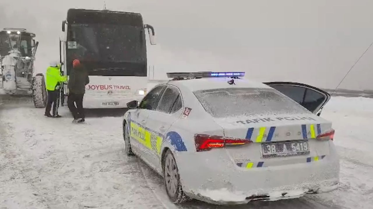 Erciyes yolu üzerinde yoğun tipiden dolayı hareket kabiliyetini yitiren tur otobüsü yolda kaldı. Trafik Denetleme Şube Müdürlüğü ekipleri tarafından tur otobüsünde bulunan 44 kişi donma tehlikesine karşı bulundukları yerden güvenli bir şekilde kurtarıldı. Daha sonra ekipler, 44 kişiyi şehir merkezine sevk etti.